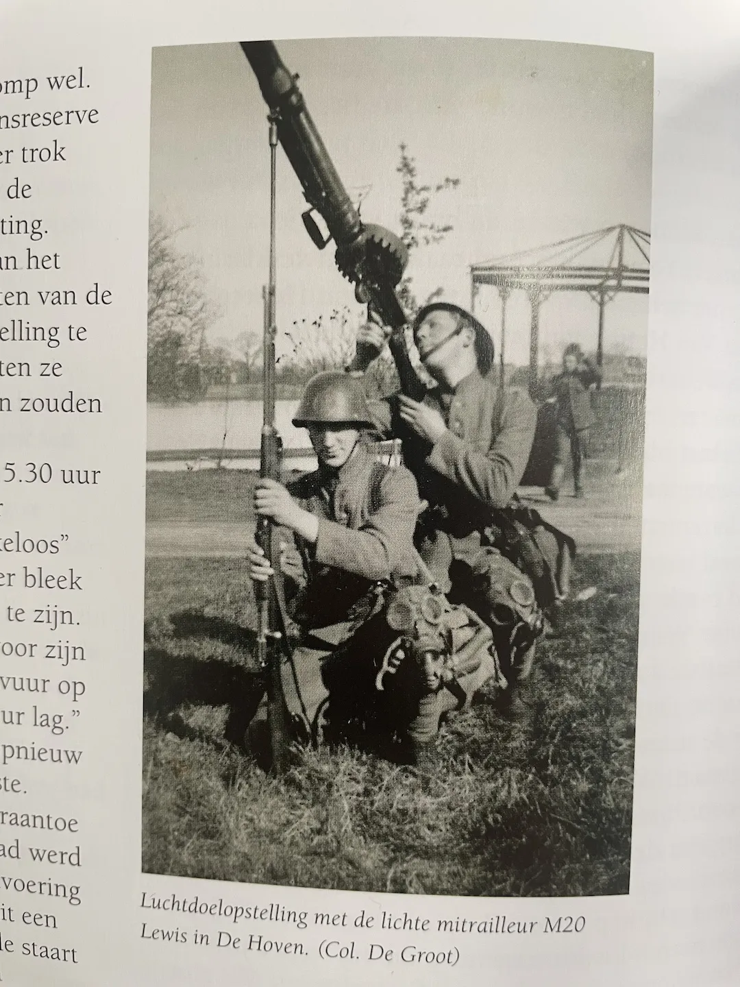 Op pagina 110 staat een foto van twee soldaten waarbij een Hembrug geweer als geïmproviseerd affuit voor een Lewis M20 mitrailleur wordt gebruikt. Deze luchtdoelopstelling fascineert me en ik ben benieuwd of hier meer informatie over te vinden is.