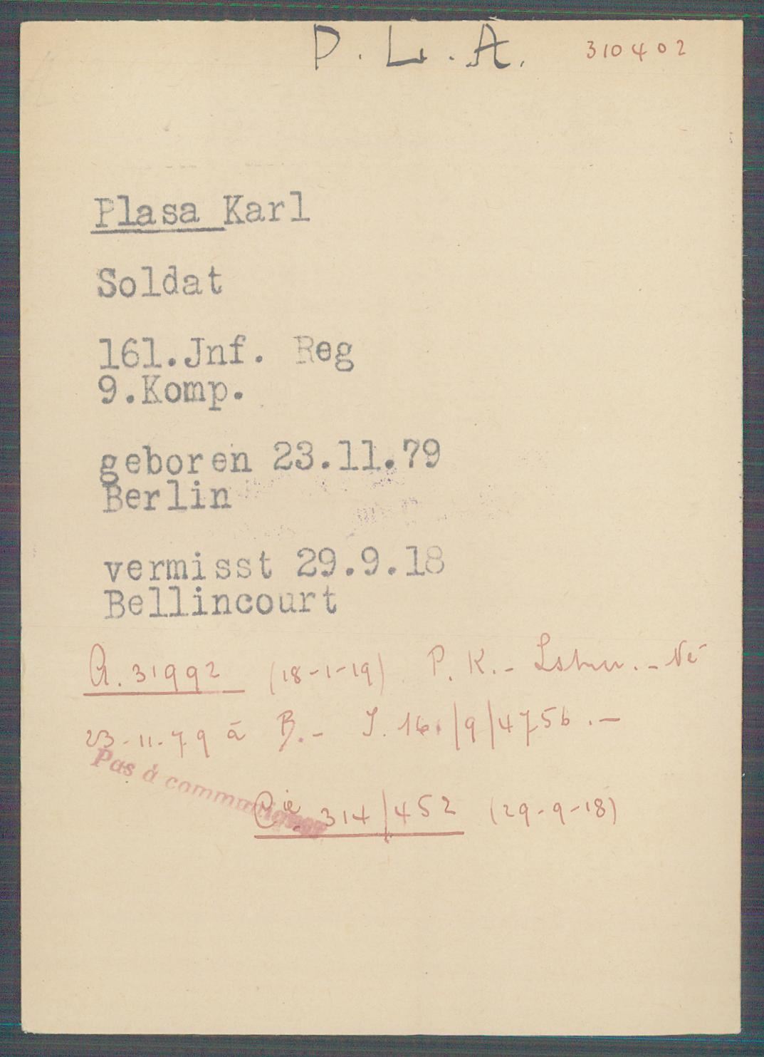 | Aantekeningen | 13-02-1919 Melding vermist in Deutsche Verlustlisten, Preußen 1364. |