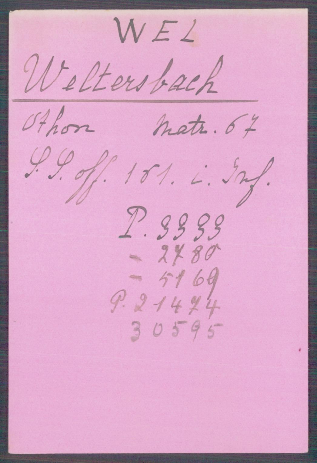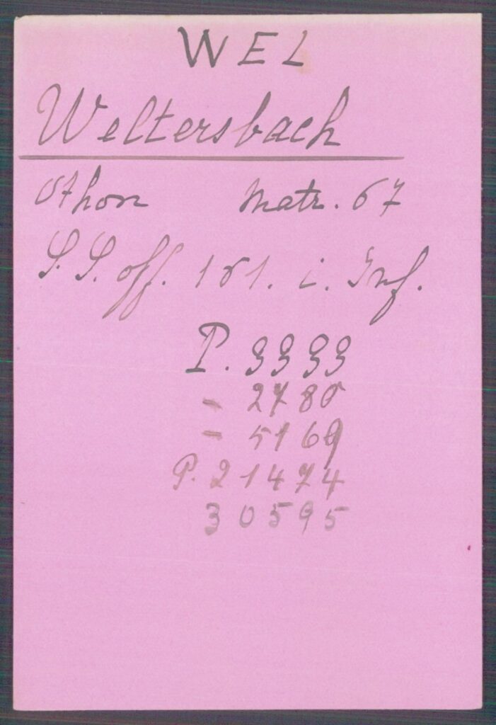 | Aantekeningen | 29-10-1914 Melding vermist in Deutsche Verlustlisten, Preußen 63. 12-12-1914 Melding gevangen "bisher vermißt, verwundet in Gefgsch." in Deutsche Verlustlisten, Preußen 100. |