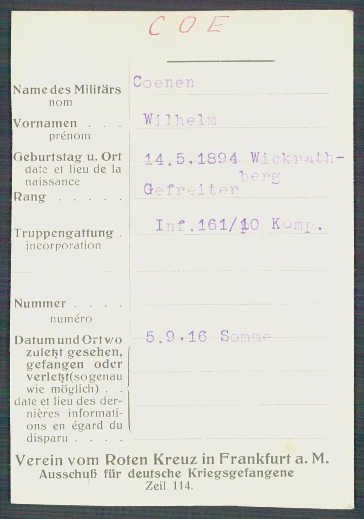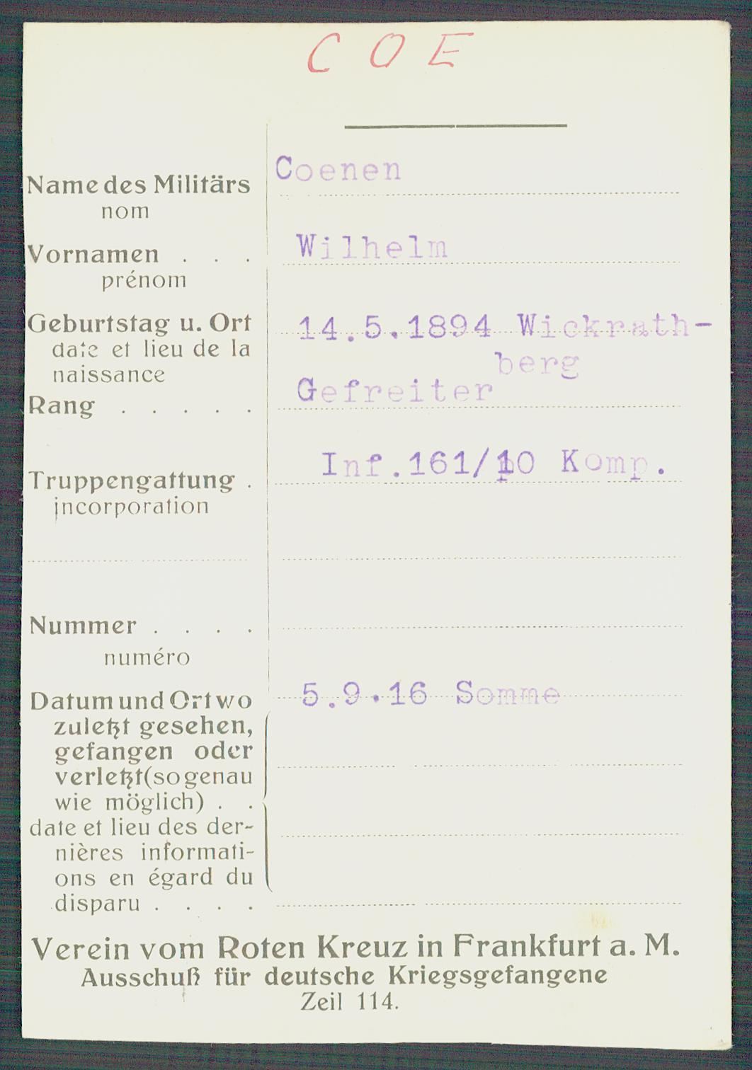 | Aantekeningen | 16-10-1916 Melding vermist in Deutsche Verlustlisten, Preußen 660. |